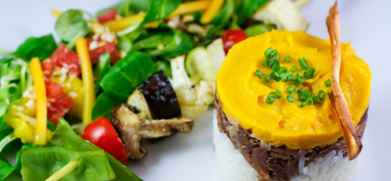 Sa reluam: nu suntem obisnuiti sa ne asezam la o masa, sa nu asteptam un numar de minute si sa vina un domn serios (in tinuta de scandal) care sa se uite pe ce am bifat si sa scape un… „mda” atoatecunoscator si apoi sa ne spuna cum a mai vazut el pe undeva (pe la Nantes sau Bilbao) pe cineva care a mancat ceva similar si nu e chiar o alegere proasta daca o combini cu asta si cu cealalta. Omul sfatos pleaca, ne gandim ca sigur face misto cu ceilalti priceputi de alegerile noastre plebee. Vine preparatul, ne uitam nedumeriti ca noi l-am ales, dar seamana si nu rasare, gustam, ne place (cum nu, ca sigur se intoarce arbitrul serii si sigur trebuie sa ne placa). Na, o experienta cum nu ne-am gandit sa avem. La sfarsit vine sa ne spuna cum, de fapt, el a luat de la noi lucruri, a adaugat mult de la el (uneori chiar si lucruri pe care am mentionat expres ca nu, sa zicem usturoi) si a iesit asta. Ne place? Ne place!
