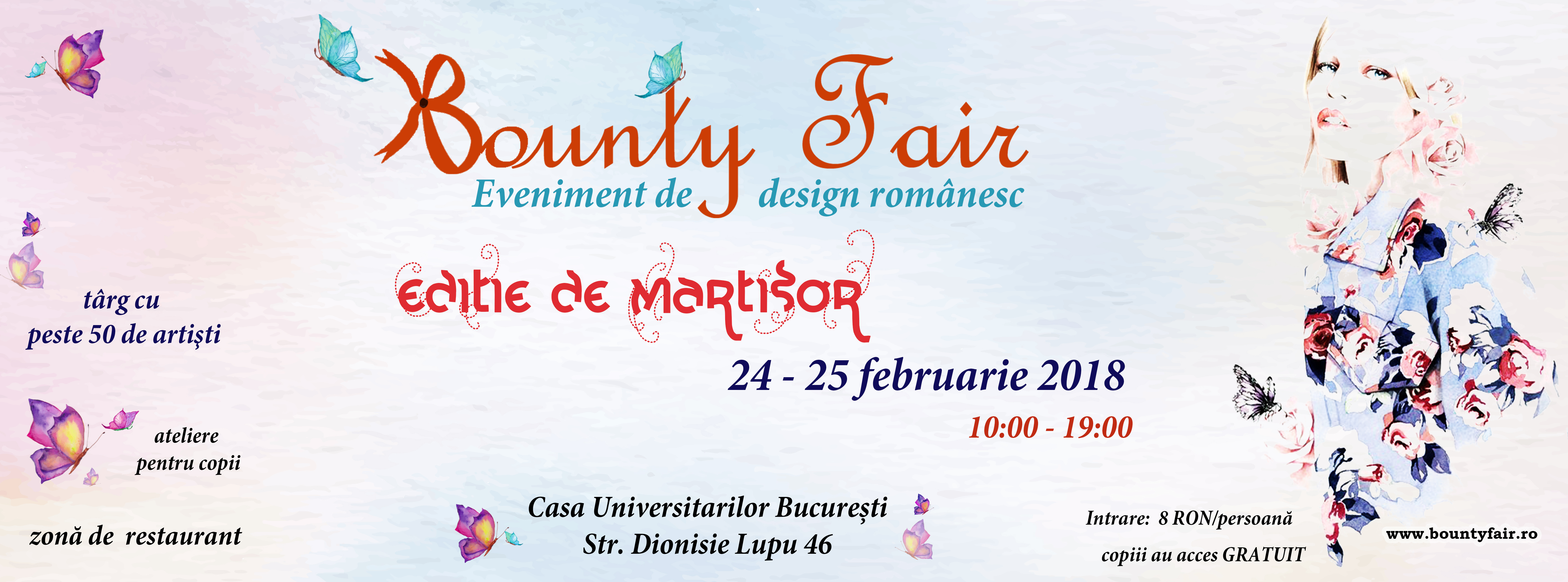 Pentru că știm că ești în căutare de mărțisoare originale pentru tine sau cele drage sufletului tău, Bounty Fair a pregătit un târg plin de mărțişoare unicat, realizate manual de către unii dintre cei mai talentați artizani romȃni, ȋntr-o diversitate de stiluri.