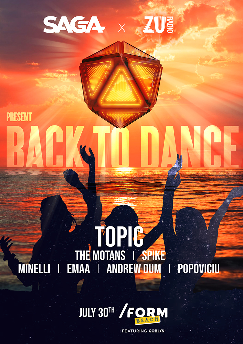Pe 30 iulie, SAGA Festival și Radio ZU transformă Form Beach din Mamaia într-un adevărat ring de dans și prezintă prima ediție dintr-o serie de evenimente Back to Dance, o petrecere ca o zi de festival.