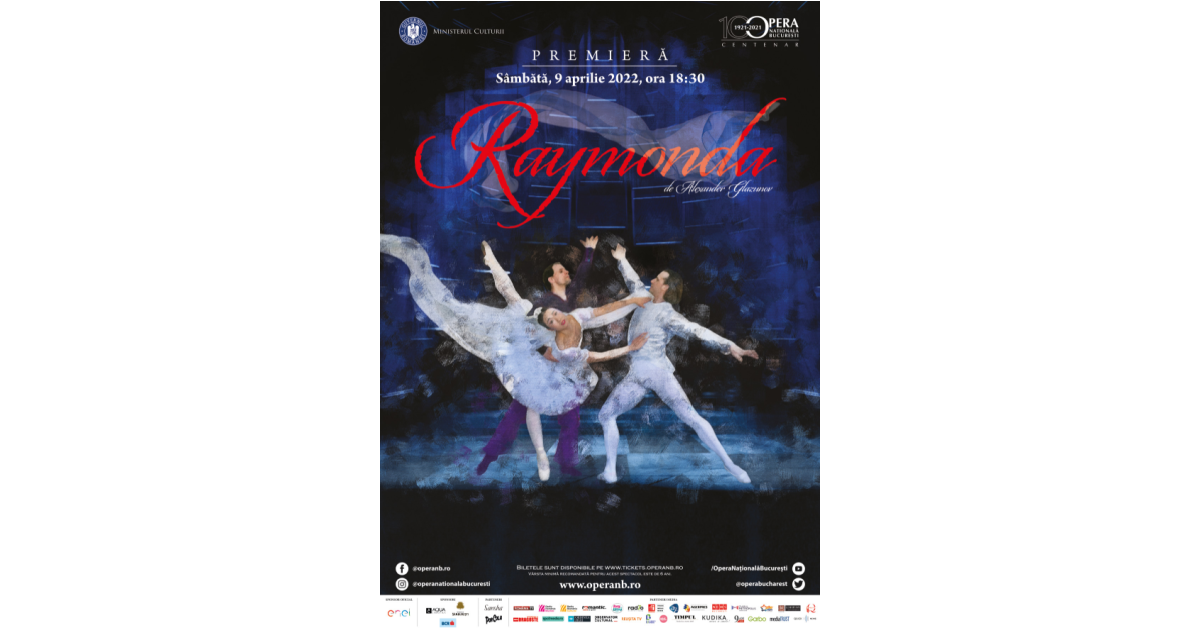 Opera Națională București prezintă sâmbătă, 9 aprilie 2022, începând cu ora 18:30, premiera de balet „Raymonda”, de Alexander Glazunov, spectacol montat pentru prima dată în istoria centenară a instituției.