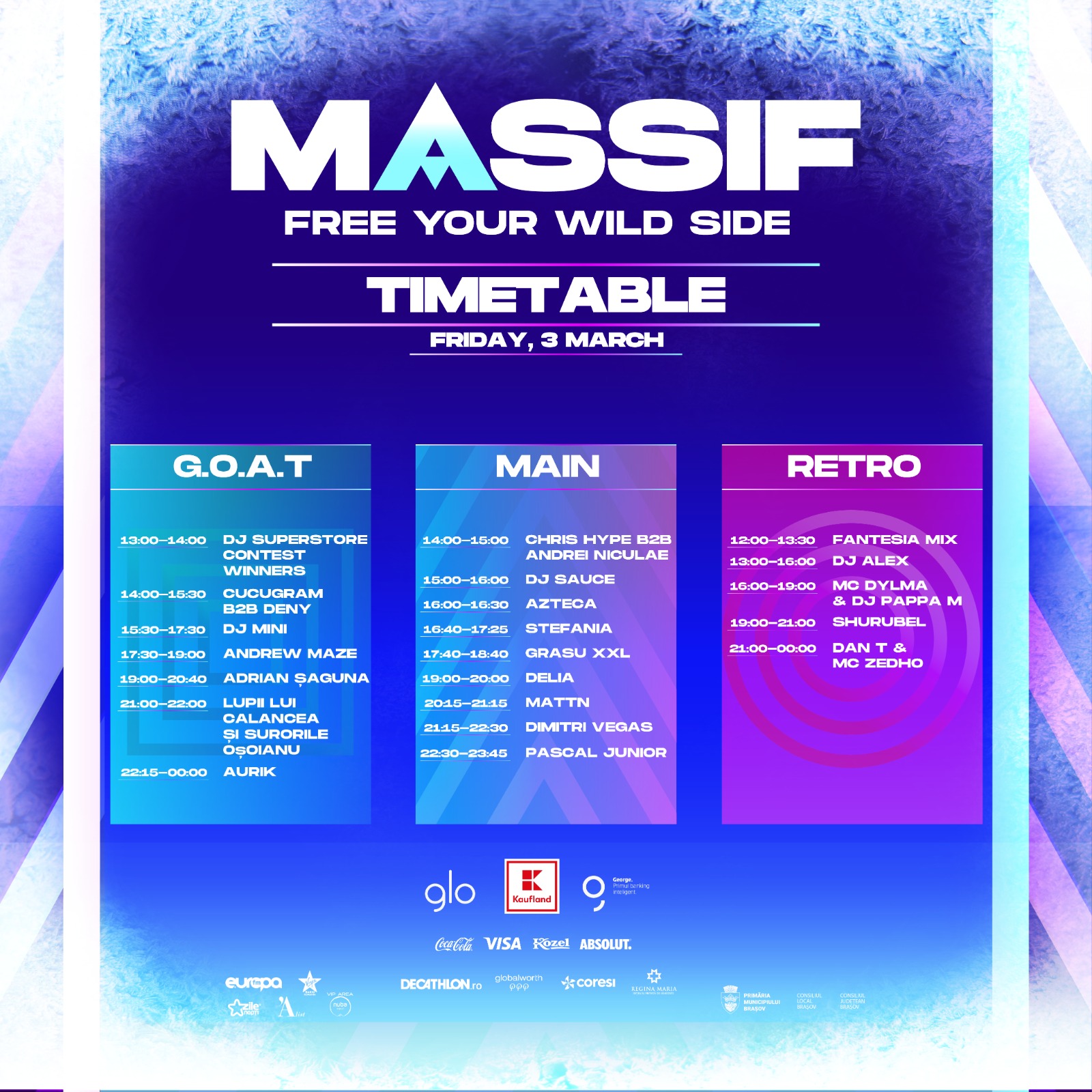 Peste 100 de artiști, trupe și DJ-i vor urca pe scenele Massif între 3 și 5 martie. Vino să trăiești cea mai tare excursie la munte cu prietenii tăi, la puterea 1000!