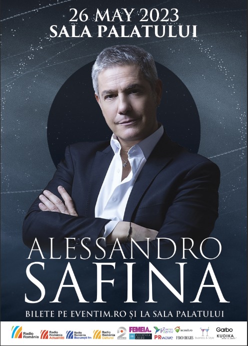 Biletele pentru concertul pe care Alessandro Safina îl va susține pe 26 mai, ora 19:30 la Sala Palatului, se găsesc în format electronic pe https://www.eventim.ro/și format printat la casa de bilete a Sălii Palatului sau în magazinele Flanco, Muzica, IQ BOX și pe terminalele Selfpay.