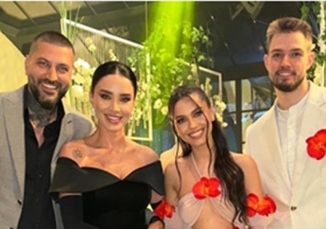 Andreea Esca a făcut furori la petrece și a optat pentru două ținute. Pe timpul zilei a îmbrăcat o rochie albastră, înflorată, iar seara s-a schimbat într-o rochie roșie, elegantă. Sore a ales și ea o rochie roșie, lungă și a optat pentru un look natural.