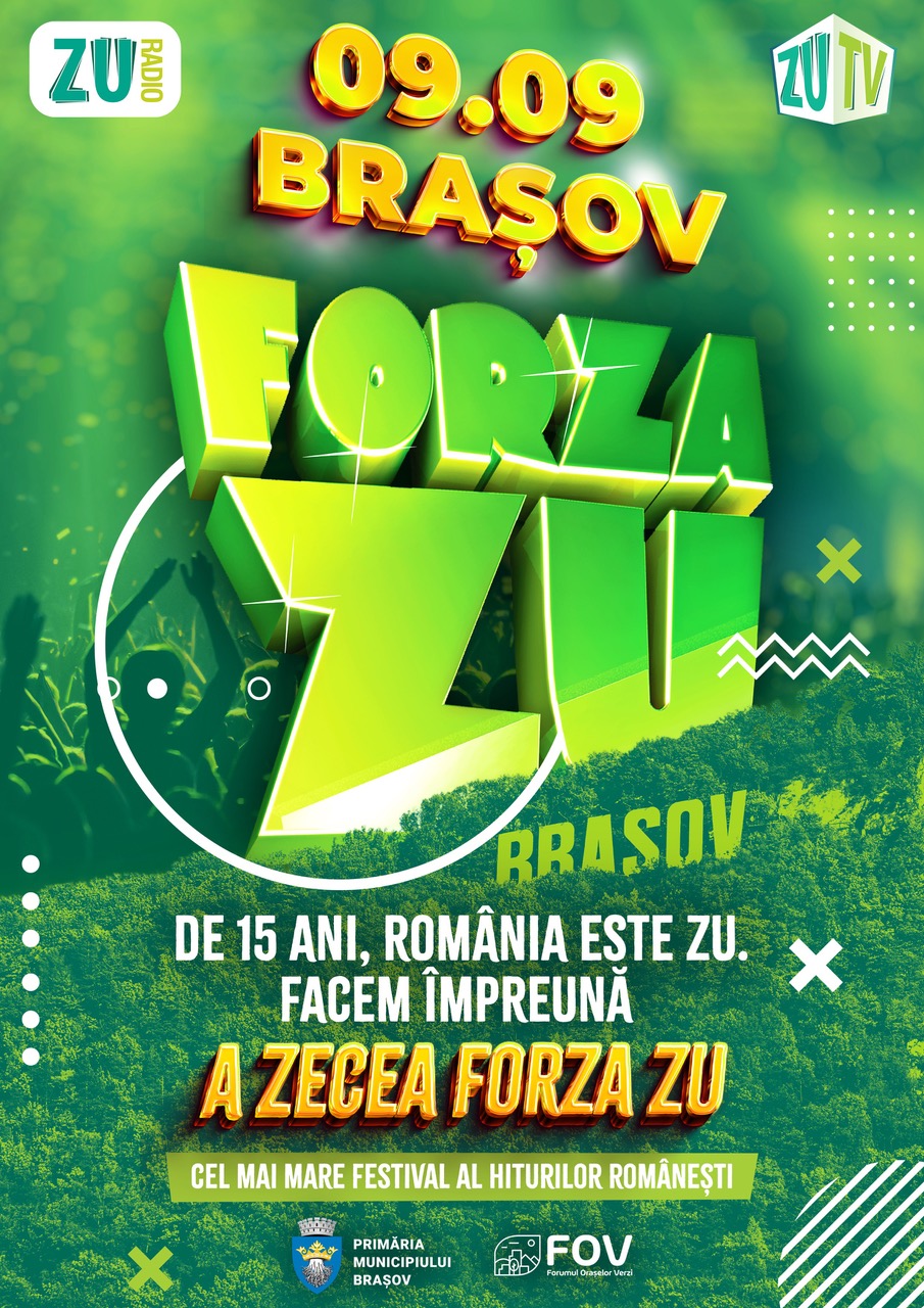 Forza ZU, cel mai mare festival al hiturilor românești, ia Piața Sfatului din Brașov cu asalt, promițând un eveniment de nota 10 odată cu cea de-a zecea ediție. Forza ZU se întoarce în Brașov pe data de 9 septembrie, la publicul alături de care a început ideea de eveniment de karaoke, mii de oameni fiind așteptați să cânte vers cu vers HIT-urile momentului împreună cu artiștii favoriți.