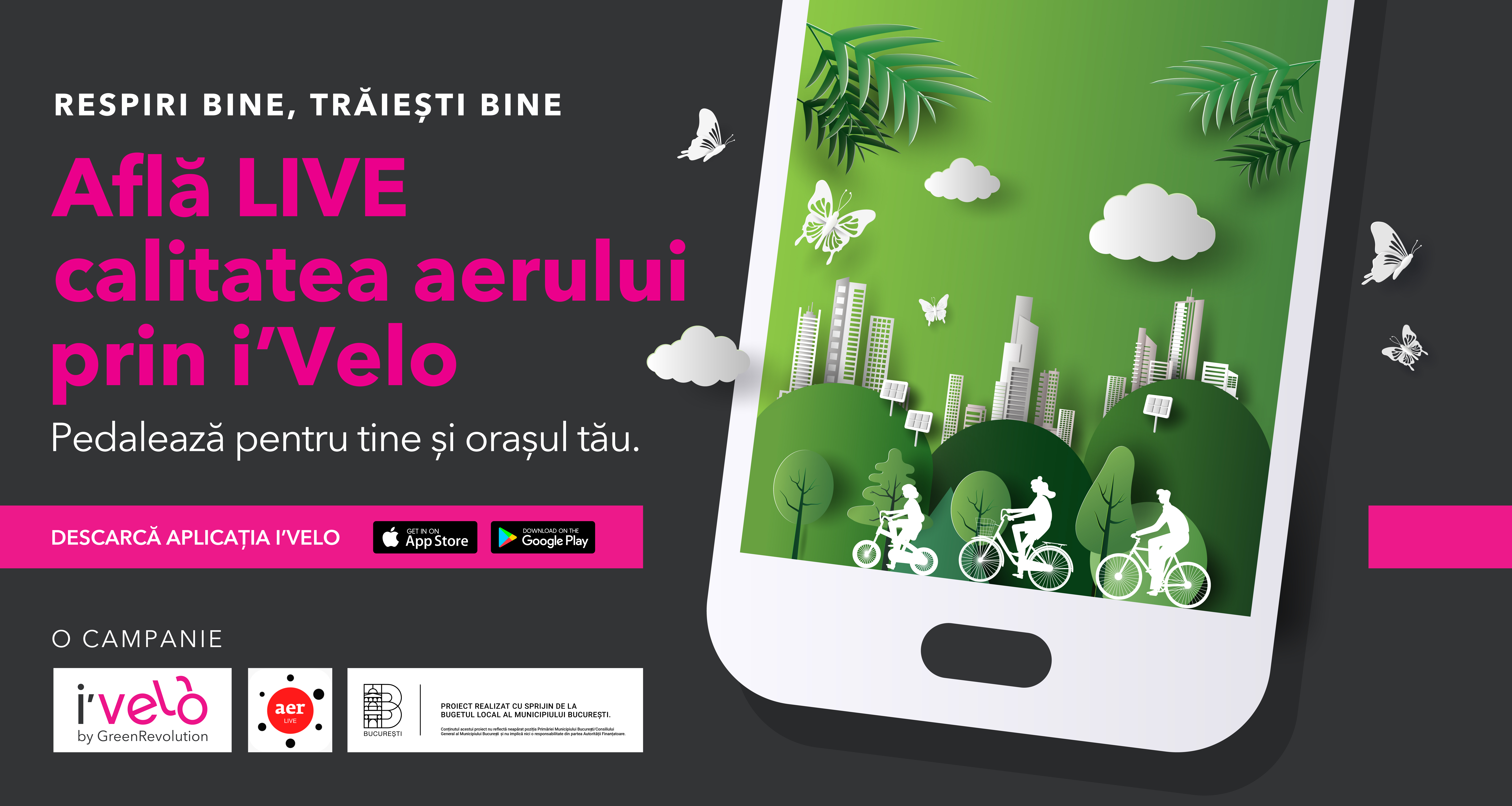 Parteneriatul dintre Green Revolution, prin serviciul de bikesharing iVelo și Ecopolis, prin platforma de monitorizare a aerului, aerlive, își propune să crească gradul de conștientizare în rândul populației asupra impactului tot mai mare pe care poluarea îl are asupra noastra și să încurajeze folosirea mijloacelor de transport alternative. Proiectul este realizat cu sprijin de la bugetul local al Municipiului București.