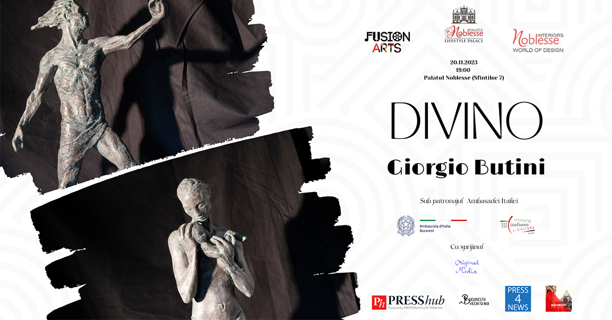 Pe 20 noiembrie, începând cu ora 19:00, Palatul Noblesse găzduiește vernisajul expoziției de sculptură, Divino, semnată de artistul italian Giorgio Butini. Prin această expoziție Giorgio Butini aduce în prim-plan o armonie de forme și detalii, inspirate din conceptul divin. Fiecare sculptură aduce în fața privitorilor măiestria artistică a sculptorului italian și relația pe care acesta o are cu viața și divinitatea.Lucrările sale scot în evidență o pasiune adâncă pentru artă și o abilitate extraordinară de a da viață bronzului și marmurei, precum și a altor materiale într-un mod care adâncește conexiunea între privitori și divinitate. Expoziția, care cuprinde 23 de sculpturi, va putea fi vizitată până pe 31.01.2024.