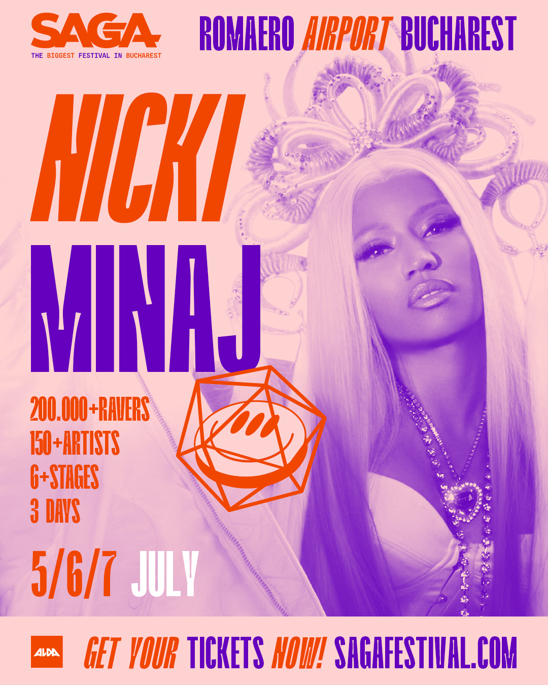 Festivalul SAGA, care va avea loc la Romaero în București, în perioada 5, 6 și 7 iulie, este cunoscut pentru line-up-ul său divers și experiența unică pentru fani. Cu locația transformată într-un aeroport în toată regula , cu scene găzduite în avioane, pe pistă și în hangare imense, Festivalul SAGA este diferit de oricare altul. Pe lângă Nicki Minaj, alți artiști renumiți precum Armin Van Buuren, Raye, Loreen, James Hype, Dennis Lloyd și mulți alții, încă neanunțați, vor urca pe scenă la Festivalul SAGA în luna iulie.