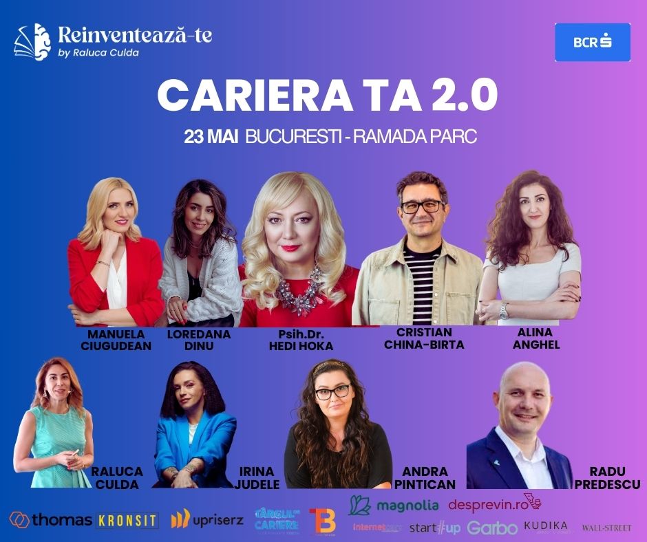 Bilete și detalii despre conferință se găsesc pe:https://www.reinventeazate.ro/conferinta-cariera-ta-2-0/