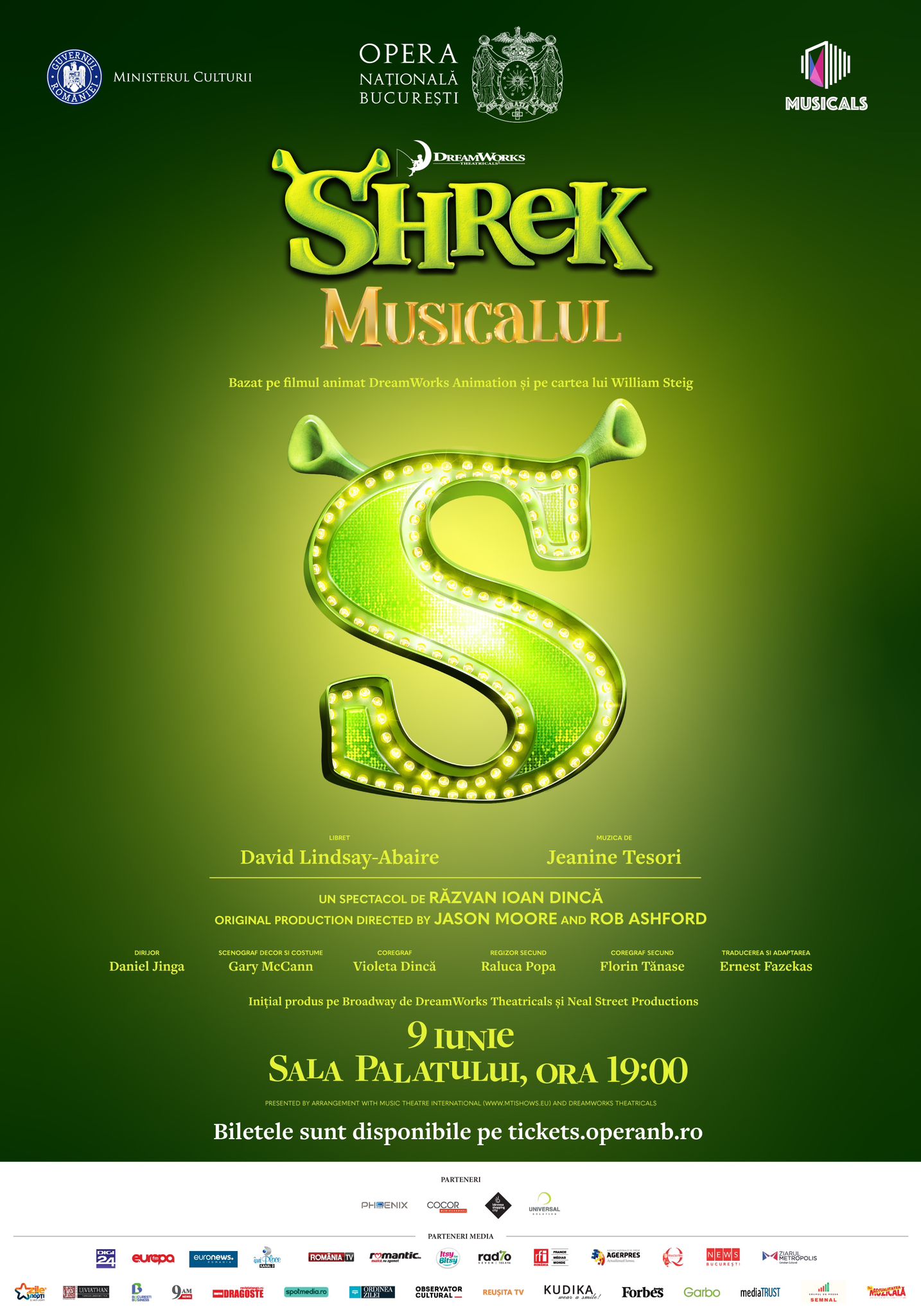 Opera Națională București și platforma Musicals.ro sunt mândre să anunțe premiera spectacolului „Shrek, Musicalul”, sub bagheta creativă a echipei care a adus pe scenă producții remarcabile precum „Fantoma de la Operă”, „Mamma Mia” și „My Fair Lady”. În regia lui Răzvan Ioan Dincă, dirijat de Daniel Jinga, cu scenografia de Gary McCann și coregrafia de Violeta Dincă, acest musical se va desfășura în 9 iunie, ora 19:00, promițând o experiență inedită pentru publicul de toate vârstele.