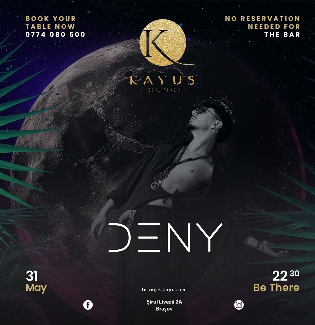 Așadar, pe 31 mai, de la ora 22:30, Caius Covrig te îndeamnă doar să „be there”, la Kayus Lounge Brașov, pentru că la pupitrul de DJ va urca nimeni altul decât DJ Deny, artistul de gen preferat de Loredana Groza. Povestea frumoasă va începe puțin după ora 22:00 și se va prelungi până dimineață, iar bucuria, muzica bună și distracția vor pune stăpânire pe oamenii locului.
