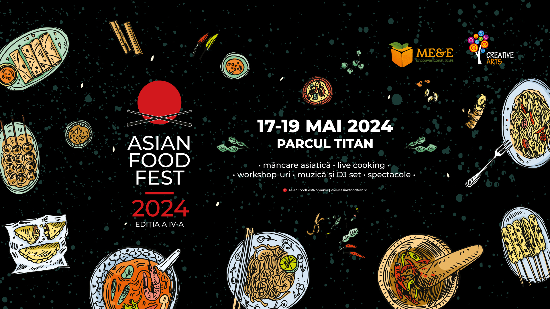 Cea de-a 4-a ediție a celui mai mare festival dedicat bucătăriilor asiatice, Asian Food Fest, are loc în Parcul Titan din Capitală (zona Calul Titanilor și Scena Mare, intrare dinspre Strada Liviu Rebreanu), între 17 și 19 mai. Intrarea la festival este liberă.