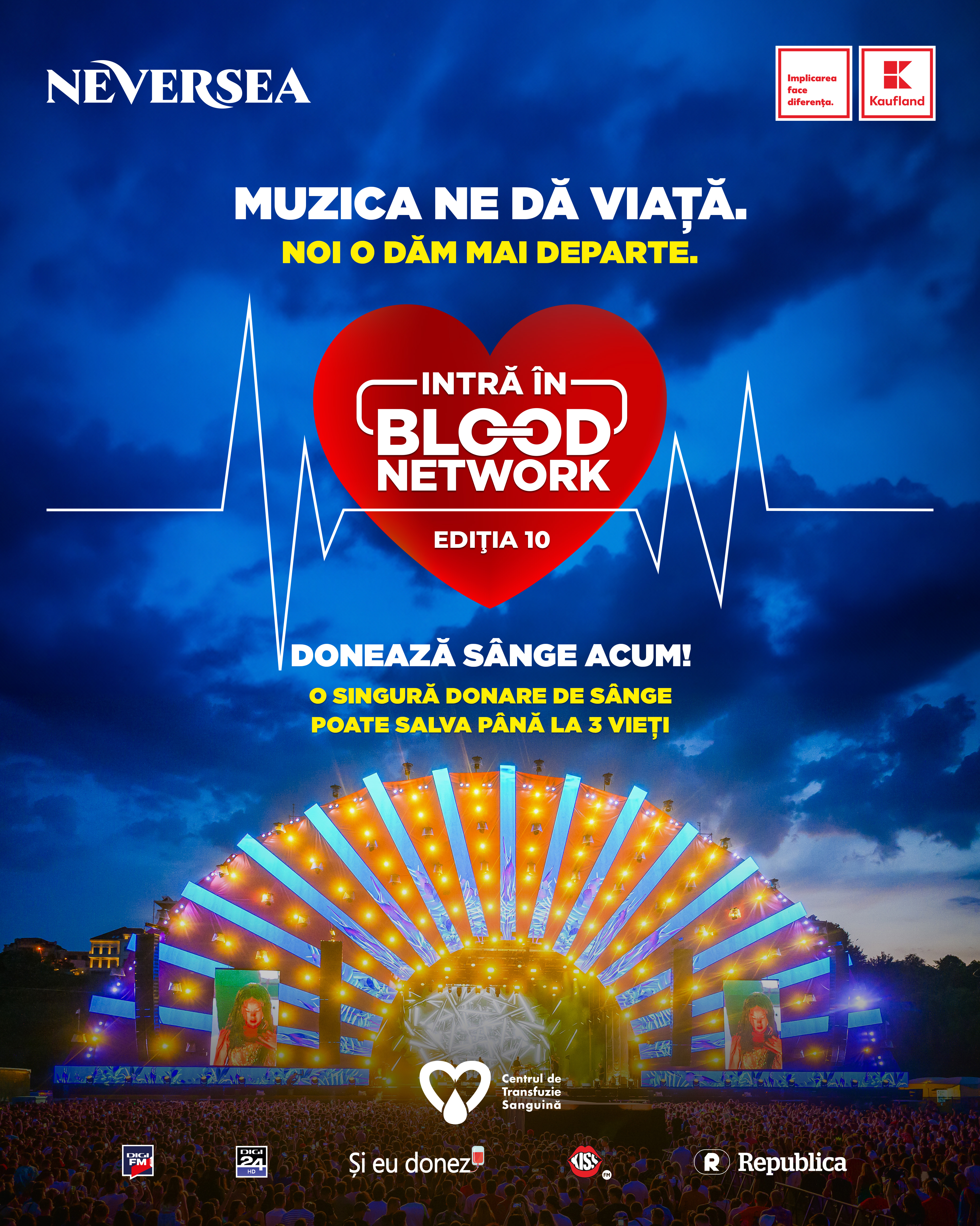Organizatorii festivalurilor UNTOLD și Neversea dau startul celei mai longevive inițiative de donare de sânge din România, BLOOD NETWORK, care a ajuns, în acest an, la a 10-a ediție. De la începutul campaniei au fost salvate peste 60.000 de vieți, cu ajutorul a peste 18.000 de donatori din întreaga țară.