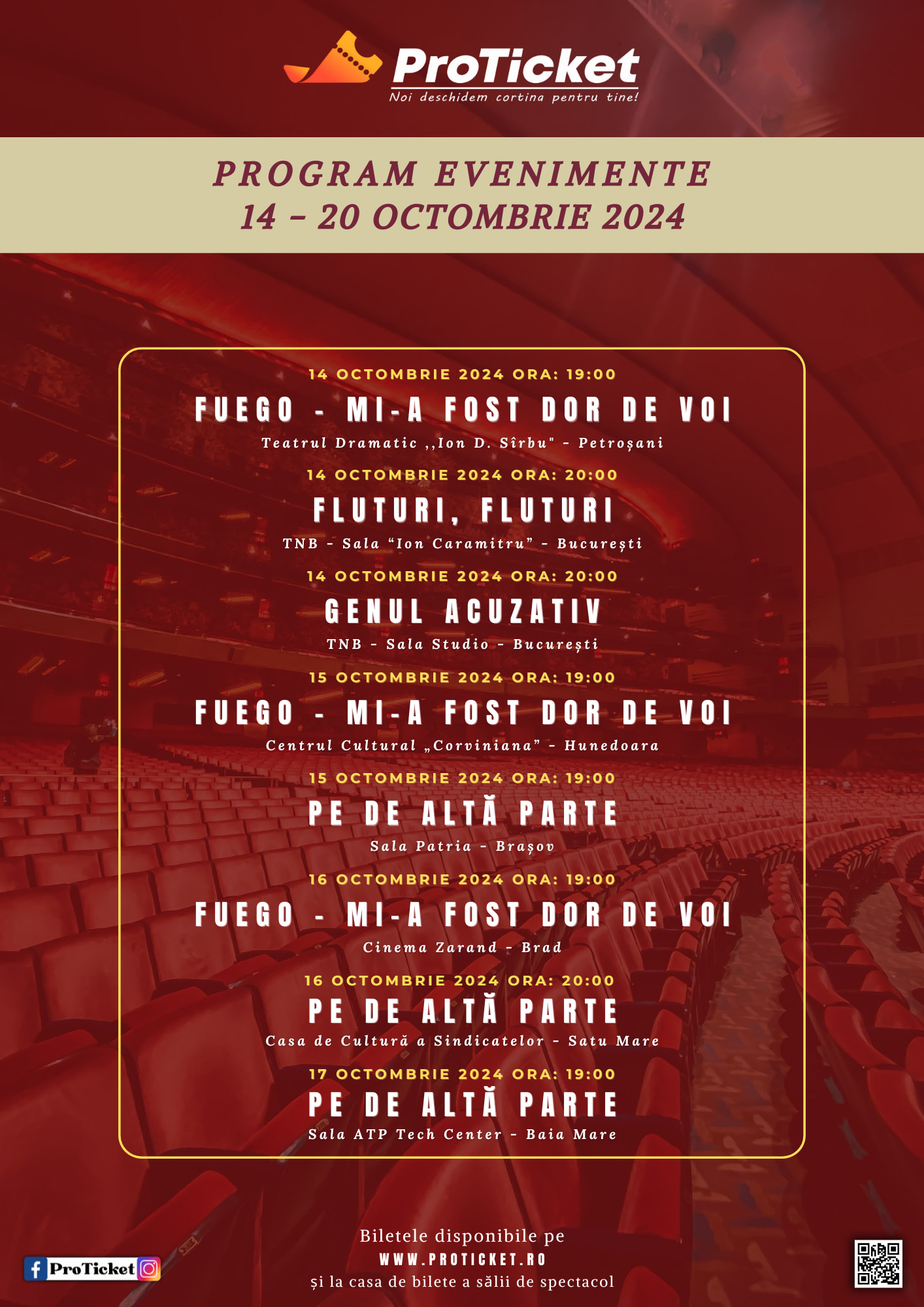 Bilete disponibile la toate spectacolele pe https://proticket.ro/.
