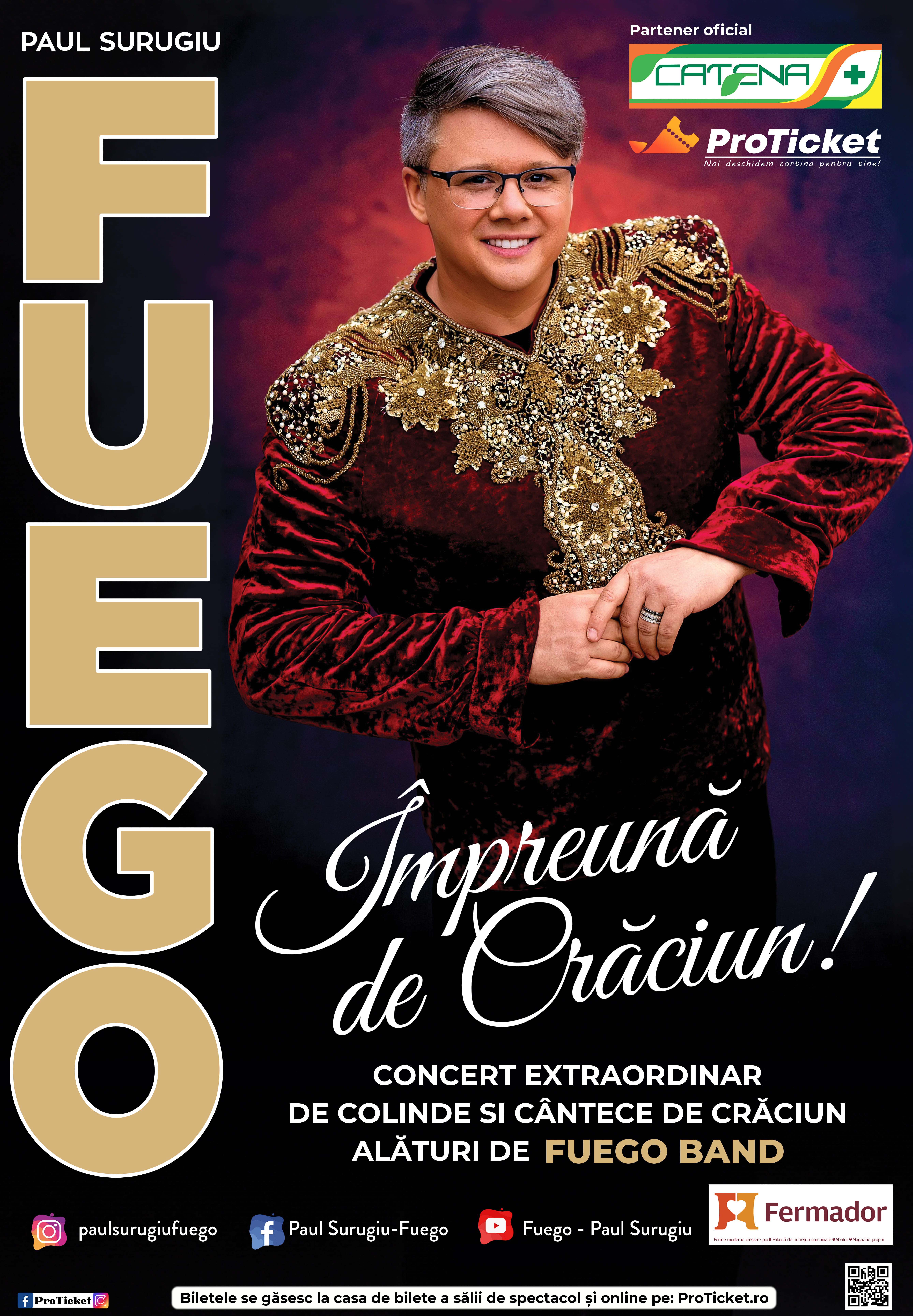Două ore de magie muzicală – aceasta este promisiunea lui Paul Surugiu Fuego pentru toți cei care doresc să se desprindă de cotidian și să intre în atmosfera fermecată a Crăciunului. Alături de talentatul său band, artistul vă invită să trăiți un spectacol unic, plin de diversitate, ritm, simplitate și o paletă întreagă de emoții, de la râs la lacrimi, toate sub semnul sărbătorii.