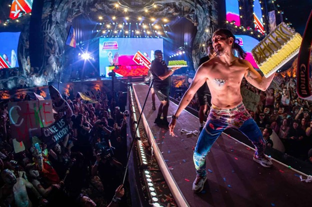 Când tortul devine statement, pentru Steve Aoki, orice detaliu contează. “Cake moment”-ul legendar vine cu brief logistic: DJ-ul cere ca fiecare tort să aibă textura atât de moale încât „degetul să poată intra în el fără efort”. Singurul frosting acceptat? Frișcă colorată, nici vorbă de fondant sau glazură cu unt. Dacă patiserul nu înțelege brief-ul, răspunsul e clar: „Găsiți altul!”.