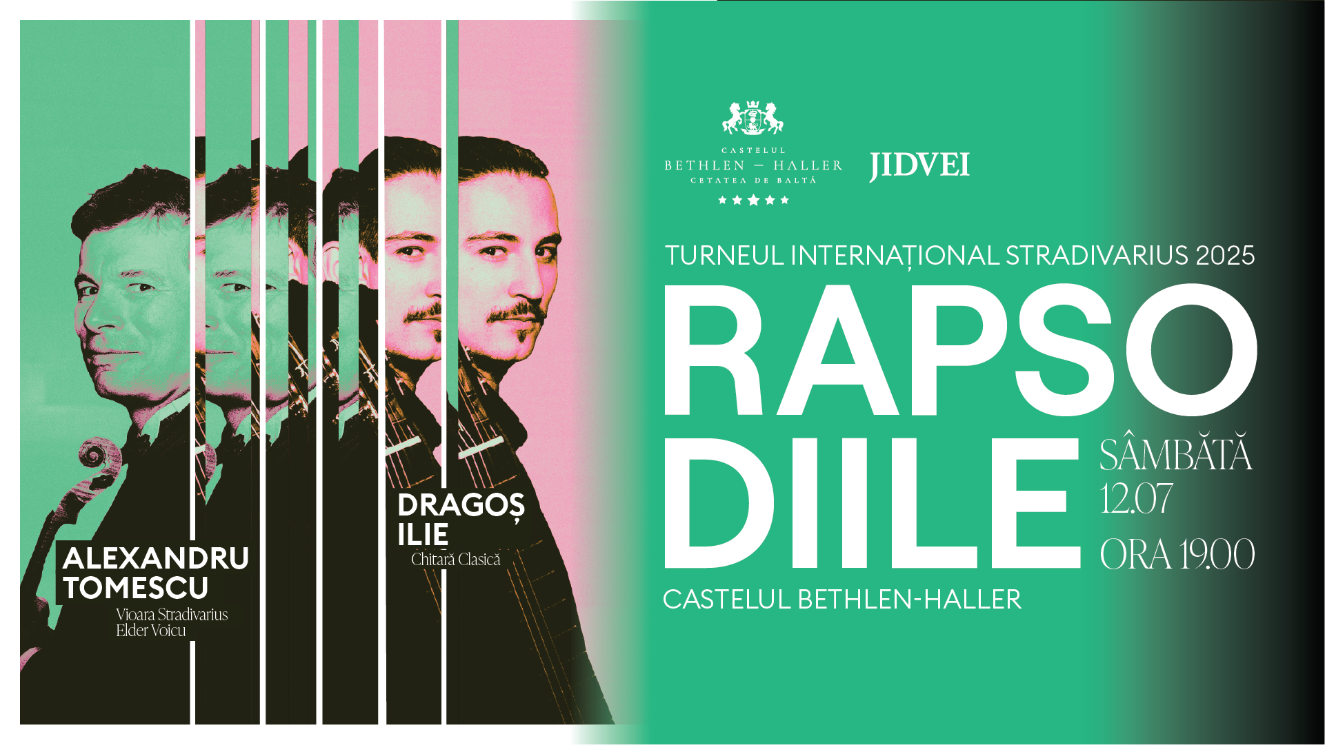 Pe 12 iulie 2025, la Castelul Bethlen-Haller, de pe domeniul Jidvei, va avea loc un eveniment extraordinar: concertul de închidere al celei de-a XVIII-a ediții a Turneului Stradivarius – RAPSODIILE. Susținut de marele violonist Alexandru Tomescu și de chitaristul clasic Dragoș Ilie, concertul promite nu doar o seară muzicală, ci o experiență care va rămâne multă vreme în memorie.