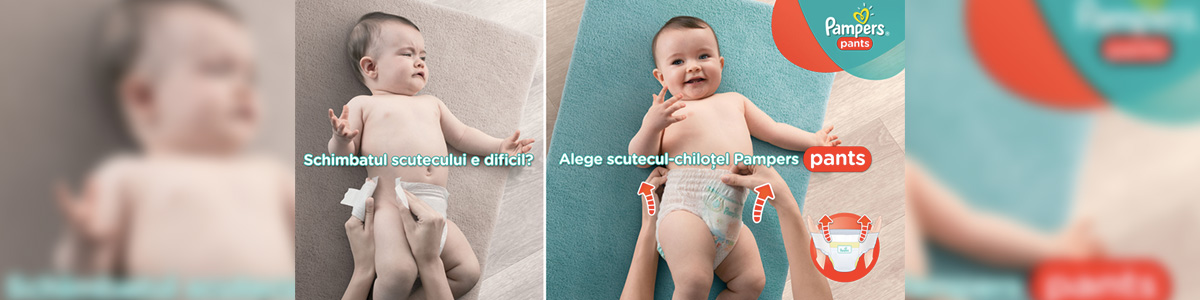 Timpul trece, iar, odata cu el, fiecare moment se transforma intr-o noua aventura si orice activitate devine un prilej de joaca. Cand vine vorba de schimbatul scutecului, lucrurile se complica. Tu vrei sa lipesti lateralele, iar cel mic te surprinde cu o pirueta; vrei sa il ridici, bebelusul se misca, iar tu ramai in mana doar cu un scutec mototolit, urmand sa o iei de la capat. Insa, cu noul scutec chilotel Pampers Pants, chiar si schimbatul scutecului se transforma intr-o joaca. Noul scutec arata si se pune la fel de usor ca un chilotel: il tragi in sus si gata, bebelusul nici nu-si iese din ritm. Iar atunci cand vrei sa il dai jos rupi lateralele, il rulezi si il arunci. Este atat de simplu! Acum puiul tau se poate bucura din plin de fiecare miscare noua pe care o descopera, devine increzator in abilitatile sale fizice si, astfel, nimic nu sta in calea dezvoltarii lui armonioase.