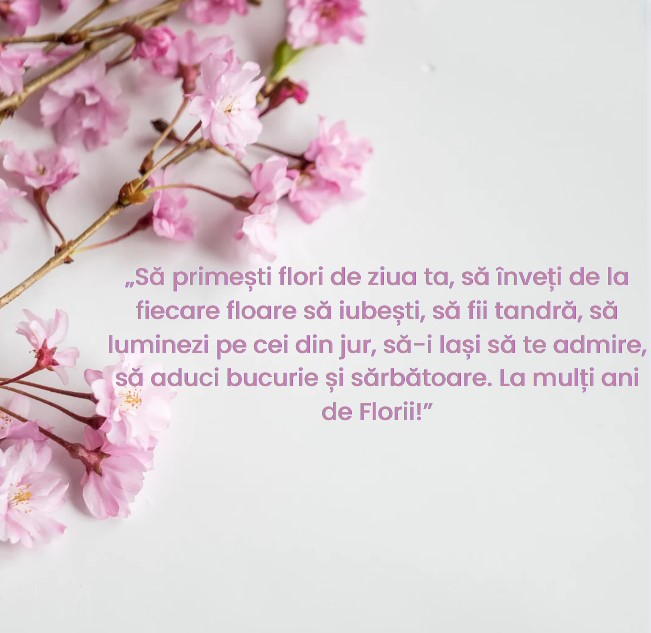 „Ziua numelui să-ti fie plină de fericire și să te bucuri mereu de orice lucru frumos din viața ta! La mulți ani de Florii!”