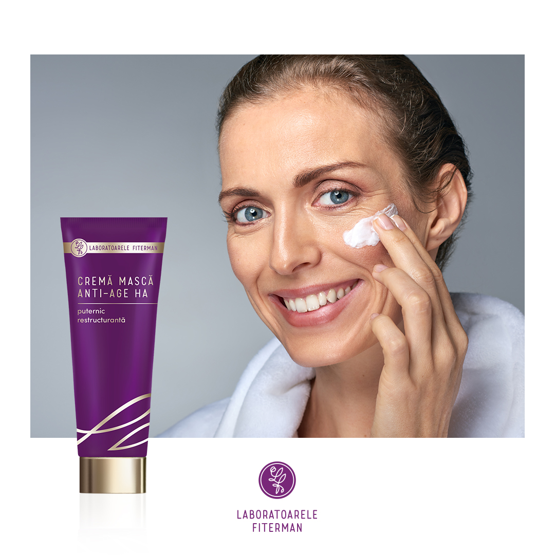 Pe lângă Crema mască, portofoliul gamei Anti-Age HA a Laboratoarelor Fiterman conține și crema de zi, crema de noapte, loțiunea demachiantă și crema contur ochi, antidotul suprem al tenului cu riduri, asigurând astfel ritualul complet de îngrijire a pielii.