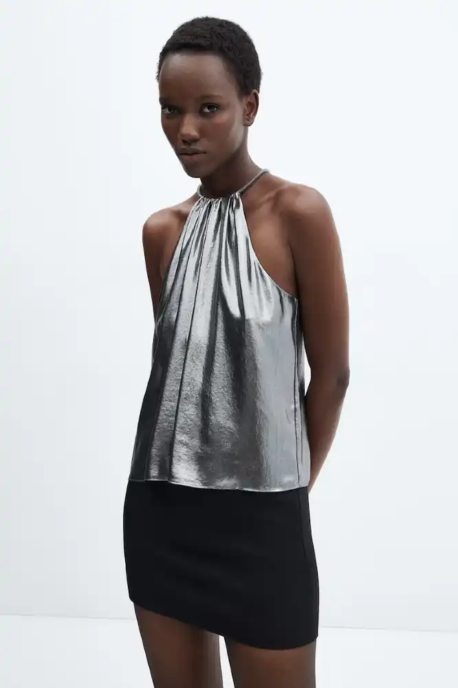 Integrarea accentelor metalice prin stratificarea hainelor este o altă modalitate inovatoare de a adăuga dimensiune și interes ținutelor tale. Poți alege o jachetă metalică pentru un aer cool și urban sau un cardigan cu detalii strălucitoare pentru un look mai casual și versatil. Jocul texturilor aduce o notă de complexitate și sofisticare.
