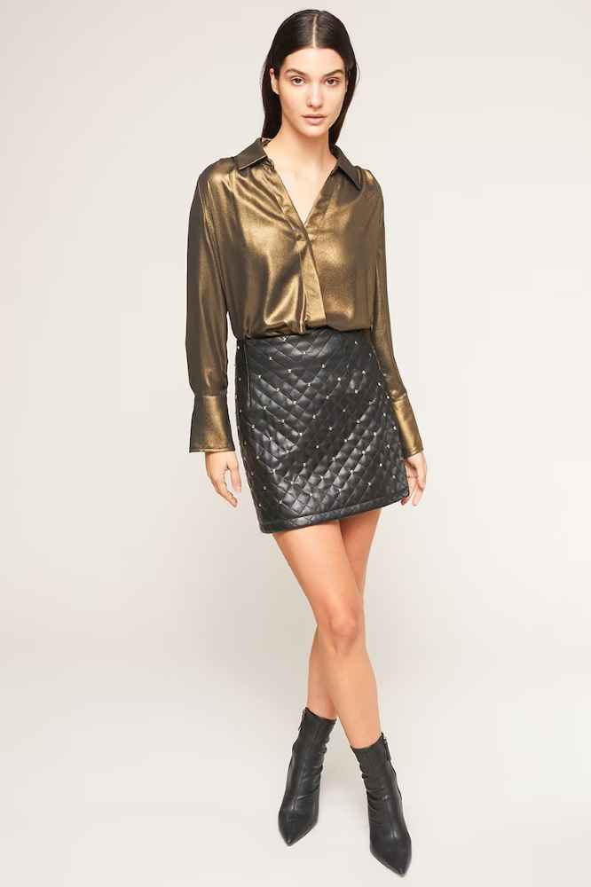 O modalitate simplă și eficientă de a adopta trendul accentelor metalice este prin alegerea hainelor cu detalii de acest fel. Bluzele sau rochiile cu nasturi sau fermoare aurii sau argintii pot aduce un plus de eleganță unei ținute aparent simple. Aceste detalii aduc un echilibru perfect între clasic și modern.