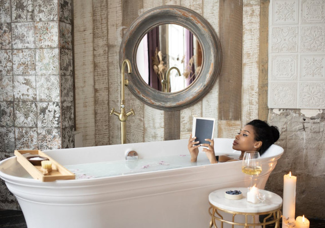 Pentru momentele când vrei să te relaxezi și să te detașezi de stresul zilnic, nimic nu se compară cu o baie spumoasă și relaxantă. Adaugă în apa călduță o spumă de baie bogată și cremoasă, care te învăluie într-o cocon de relaxare și confort sau chiar și o bombă de baie colorată. Alege arome blânde, precum lavanda sau mușețelul, pentru a-ți liniști mintea și pentru a-ți relaxa corpul după o zi agitată.
