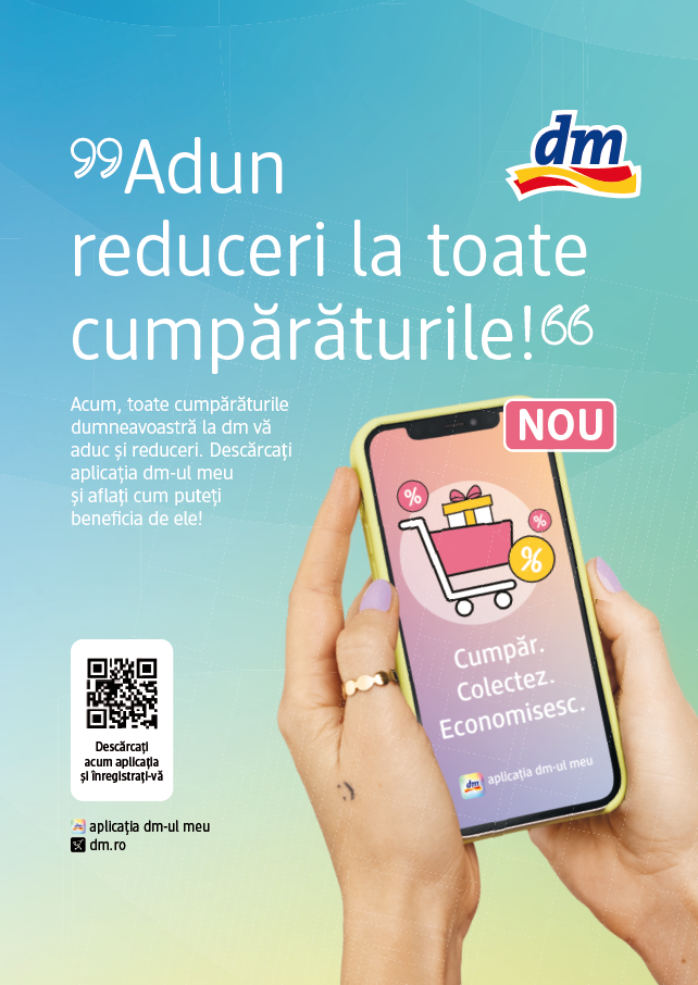 „Rămânem aproape de clienții noștri și de nevoile lor și lansăm un nou beneficiu în aplicația dm-ul meu, în semn de apreciere față de comunitatea dm. Prin intermediul noii funcții din aplicație, clienții vor avea acces la numeroase beneficii, fie că vorbim despre reduceri, cupoane exclusive sau oferte personalizate, având posibilitatea de a face totodată economii semnificative”– Daniela Jordanovski, reprezentant dm drogerie markt.