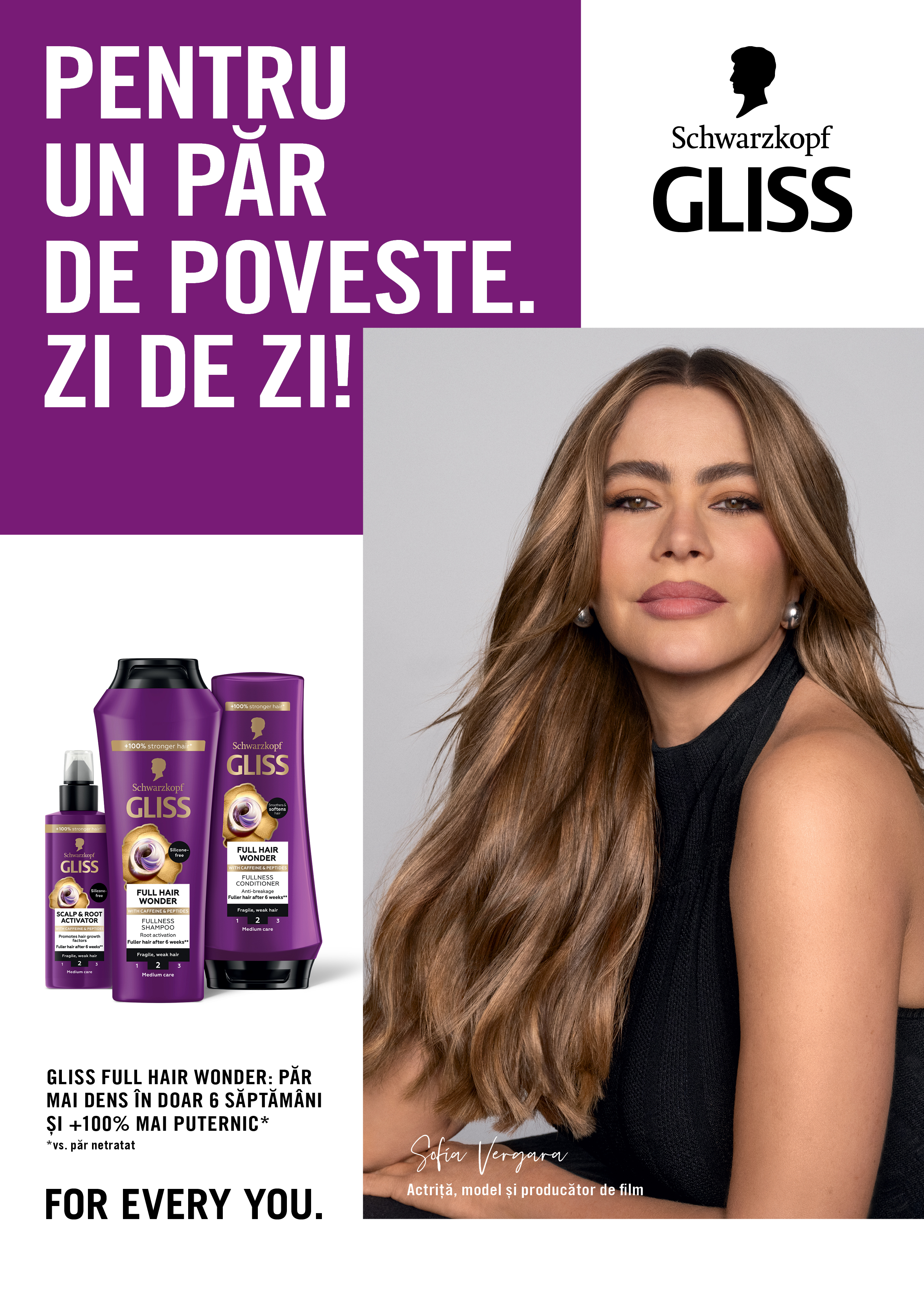 Folosite împreună – tratamentele pentru scalp și lungime, alături de șampon și balsam – produsele Schwarzkopf Gliss din gama Full Hair Wonder formează un sistem complet de îngrijire, pentru un păr frumos, sănătos și strălucitor, asemenea celui al Sofiei Vergara.