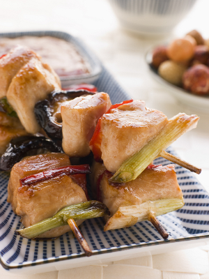 Mod de preparare: se taie carnea si legumele bucatele, apoi se adauga treptat pe bete pentru frigarui. Se condimenteaza cu sare si piper si se adauga la cuptor pentru aproximativ 15 minute.
