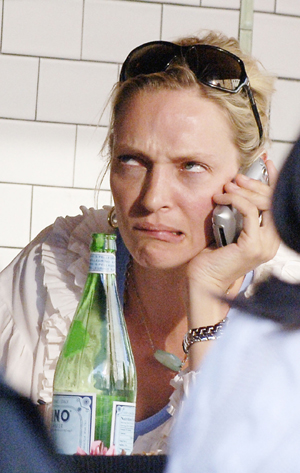 Uma Thurman intr-un restaurant din New York. Stiti ce veste a primit de la tipul pe care l-a cunoscut pe net, acum o saptamana? "Uma draga, masor 7 centimetri... sunt un adevarat armasar, papusa!"