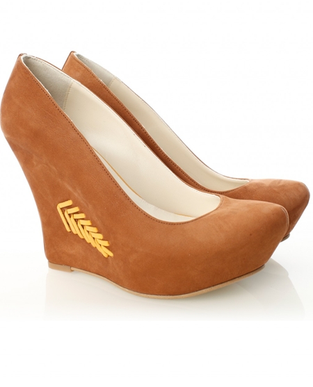 Pantofi inalti, realizati din piele intoarsa cu platforma acoperita.