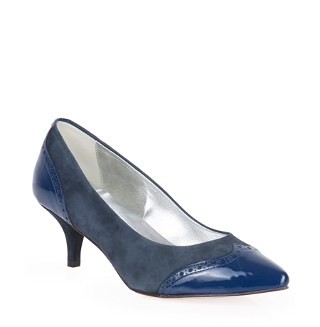 Sunt realizati intr-o combinatie de piele intoarsa cu piele lacuita si au varf ascutit. Designul este retro cu piele perforata iar tocul cui de 6 cm este imbracat in piele intoarsa.