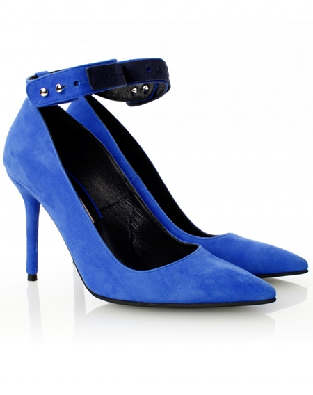 Pantofii albastri cu toc sunt realizati din piele naturala si au pe glezna o bareta pentru sustinere.