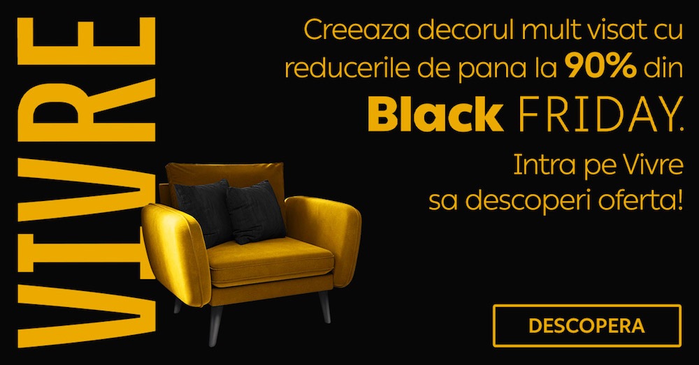 De Black Friday, Vivre îți oferă șansa să-ți redecorezi casa fără să fie nevoie să investești o mică avere în produsele care se vor integra de minune în locuința ta. Iată doar câteva exemple de produse care vor avea discounturi cu totul și cu totul speciale: