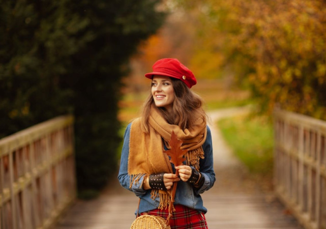 Culori închise și nuanțe pământii: Din cadrul spectrului de culori al toamnei, tonurile închise de verde, maro, mov și roșu se numără printre cele mai populare alegeri. Eșarfele în nuanțe de șofran, teracotă și aramă adaugă căldură și profunzime oricărei ținute, oferind o asortare plăcută cu peisajul toamnei.