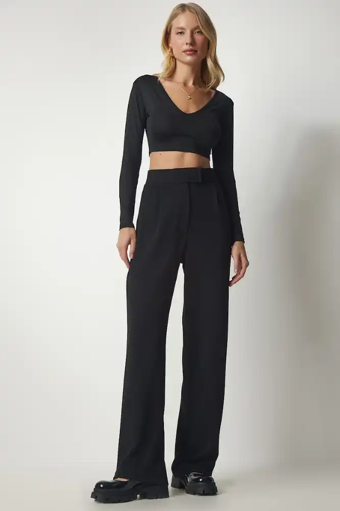 Pantalonii cu talie înaltă aduc o notă de eleganță și rafinament în orice ținută. Talia înaltă subliniază linia naturală a taliei și alungeste aspectul picioarelor, oferind astfel o siluetă subțire și feminină. Această caracteristică face pantalonii cu talie înaltă o alegere versatilă, potrivită pentru diverse ocazii, de la ținute de birou la evenimente speciale.