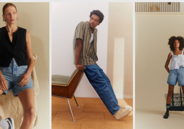 Pentru partea de jos din colecția pentru femei care se bucură de soare, Featherweight Denim este cea mai ușoară formă de denim ușor de până acum, prezentă în modelele High Baggy, Ribcage Bermuda, Carpenter Shorts și o gamă de fuste. Noul reiat Lightweight de 28 de grame este deosebit de moale, drapat și ideal pentru plajă. Colecția cuprinde și articole din bumbac cu tencel shrink-to-fit pentru modelul 501 de inspirație anii '90.