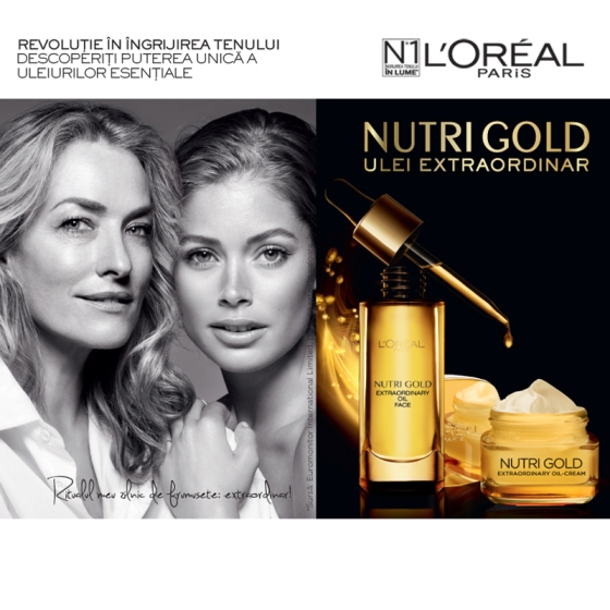 Tenul tau nu s-a bucurat nicicand de o nutritie mai intensa! Imagineaza-ti beneficiile celor mai hranitoare uleiuri intr-o gama de produse miraculoase. Nutri Gold Ulei Extraordinar reprezinta tratamentul care raspunde nevoilor pielii tale indiferent de varsta. Este elixirul minune al frumusetii naturale! Gama Nutri Gold Ulei Extraordinar e formata dintr-o crema ulei uimitoare si un ulei de fata care va crea dependenta.