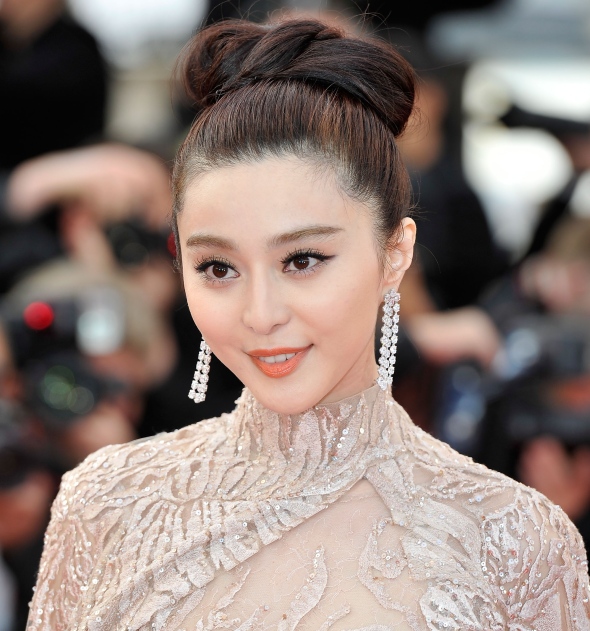 Machiajul lui Fan Bingbing a impletit elementele retro cu detalii moderne. Tusul negru i-a alungit ochii, conferindu-le expresivitate. Pentru machiajul fetei si al pleoapelor s-au utilizat farduri in tonuri deschise nude. Buzele au reprezentat pata de culoare, gratie rujului corai.