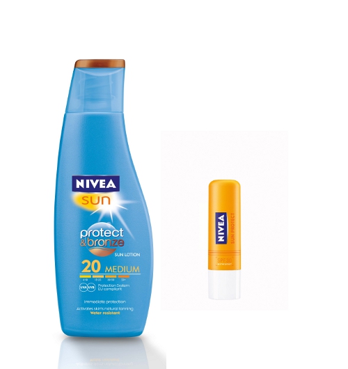 - Lotiunea de plaja NIVEA SUN Protect & Bronze, SPF 20. Pentru un bronz intens, de durata, si o piele frumoasa si sanatoasa, NIVEA iti recomanda si lotiunea de plaja NIVEA SUN Protect & Bronze, disponibila in variante de SPF de 20, 30 si 50. Formula sa contine extract de licorice, care ajuta pielea sa obtina in mod natural un bronz uniform si de durata, fara a pierde din protectia impotriva razelor nocive UVA/ UVB. Pret: 32,22 lei