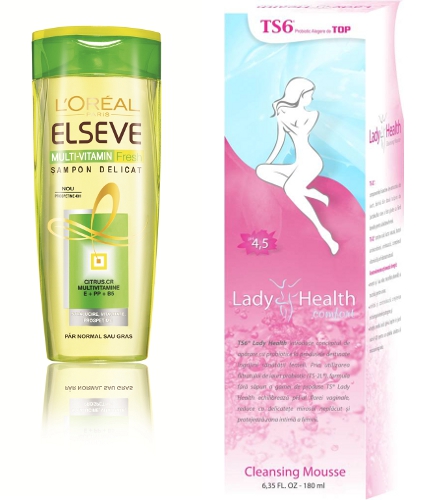 - Lady Health Cleansing Mousse – spuma pentru igiena intima externa (pH 4.5) are in compozitie iaurt filtrate, suc din Frunze de aloe vera si extract de arbore de ceai. Pretul recomandat este de 49.6 ron.