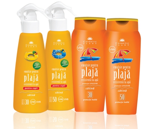 Gama pentru plaja Cosmetic Plant se adreseaza tuturor tipurilor de piele si a fost imbunatatita in acest an cu Emulsiile speciale pentru copii spray rezistente la apa cu SPF 30 si 50, fara parabeni si cu formula hipoalergenica, dar si cu variantele de emulsii cu factor de protectie 30 si 50 dedicate adultilor.