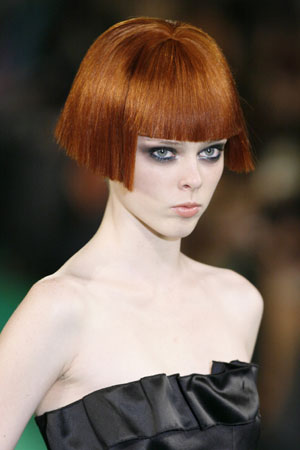 Cuvinte cheie: Linii Geometrice (Geometric Cut) Couture 60 sugereaza conceptul "fantezist" potrivit pentru femeia activa, de cariera. Coafura: Linii Geometrice. Parul este taiat astfel incat sa creeze margini, linii asimetrice in jurul fetei si in dreptul cefei. Bretonul ajuta la realizarea unei infatisari indraznete; de obicei, este gros si poate varia ca forma. Sursa informatiilor si a fotografiilor: P&G Beauty International