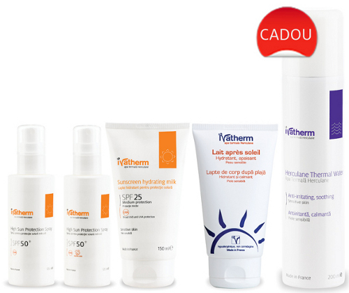 Bucura-te de vara cu protectie solara imediata si pe termen lung! Cumpara orice produs din gama solara Ivatherm si primesti cadou un spray cu apa termala Herculane, 200 ml! Campania se desfasoara in toate farmaciile partenere, in limta stocului disponibil, in perioada 1 iulie- 31 august.