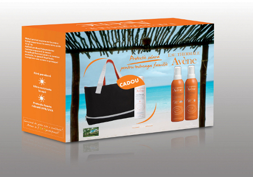 Kit AVENE Spray Copii Spf 50+, 200 ml+ Avene Spray Spf 30, 200 ml+ CADOU Avene Apa Termala 150 ml + Geanta plaja