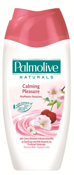 Laptele pentru dus Palmolive Calming Pleasure,imbogatit cu lapte hidratant si extracte de origine 100% naturala din flori de cires si aloe vera, ofera pielii o senzatie de calmare si condimenteaza dusul prin aroma fructata.