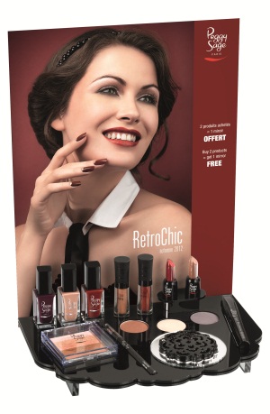 Pentru aceasta toamna Peggy Sage a lansat colectia Retro Chic pentru femeia moderna care isi asuma cu voluptate puterea de seductie, de aceea mizeaza pe culori catifelate si patrunzatoare, nude si burgundi. Colectia cuprinde: Creion de ochi khol Anthracite, Mascara Amazing Cils; Farduri de pleoape Nude Love, Retro Brown si Cherished Grey; Luciu de buze Shiny Chic si Shiny Dream; Pudra; Ruj Beige Lounge si Dark Red; Lac de unghii Nude Dentelle, Flirty Plum si Brown Leather.