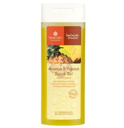 DermaSel Gel de dus cu Ananas si Papaya, cu extracte din fructe si minerale de la Marea Moarta; 150 ml.