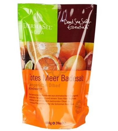 DermaSel Aqua, Sare de baie cu mandarine, sare de baie de la Marea Moarta si ulei de mandarine, 400 g.