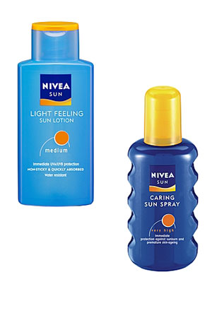NIVEA SUN Lot iune de Protect ie Solara Senzatie Usoara are o textura lejera si protejeaza eficient impotriva arsurilor solare si a imbatranirii premature a pielii.